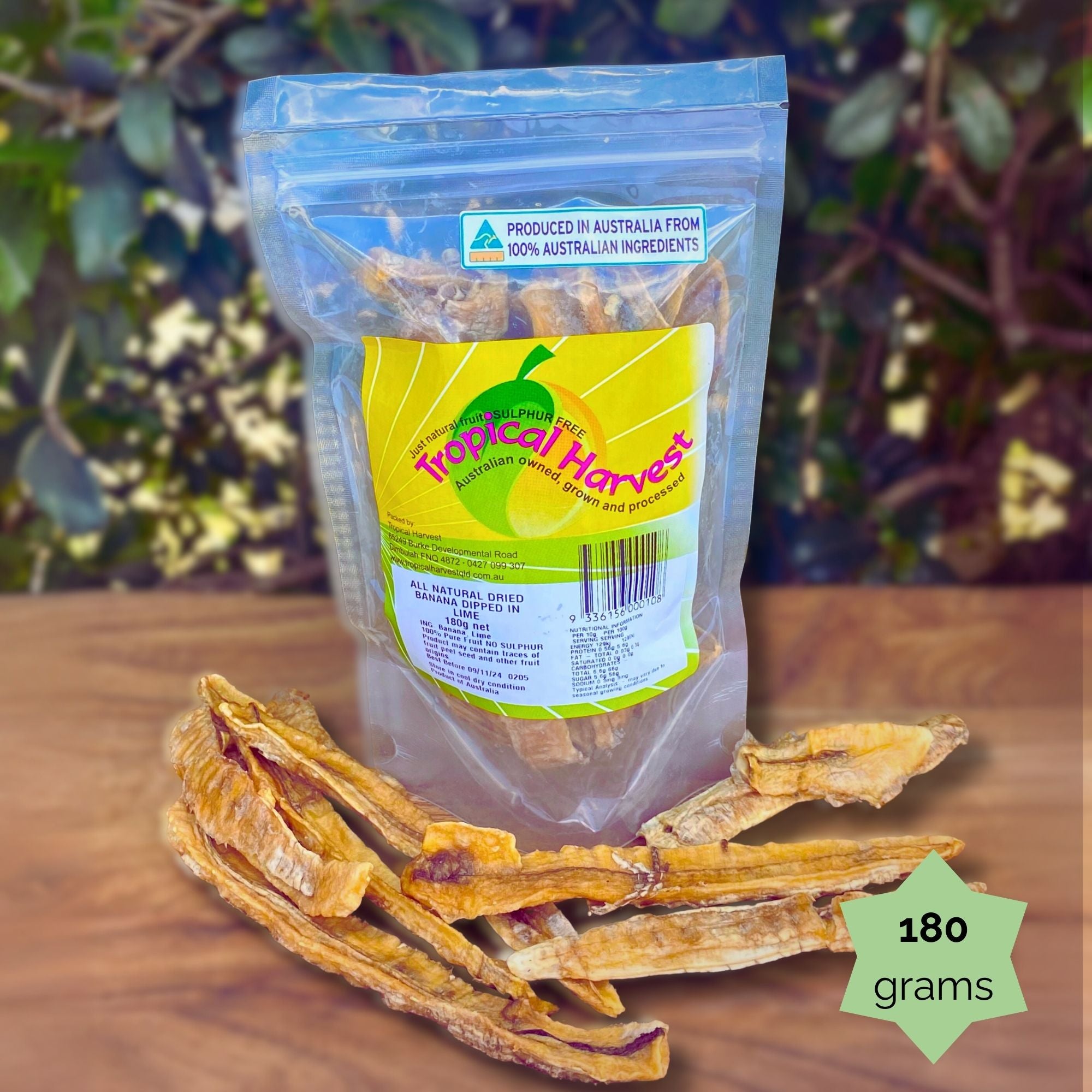 Add to cart now — Dried Australian Banana Lime, a naturally sweet and zesty citrus twist on classic dried banana..