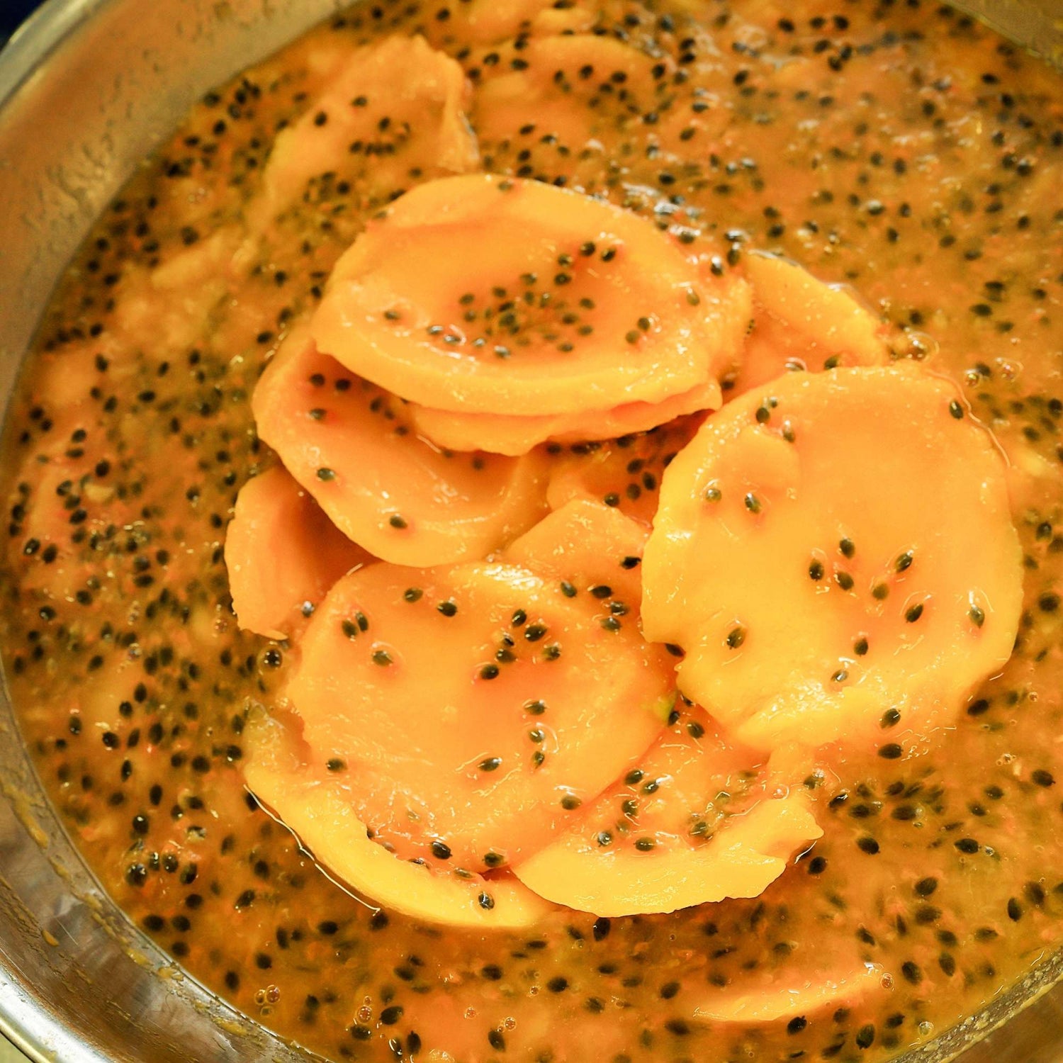 - Texture: tender, chewy mango with light crunch from natural passionfruit seeds